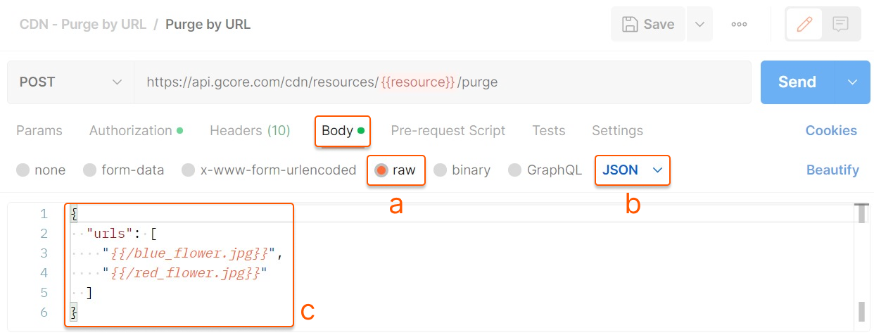 We will explain in detail how to do "Purge by URL" via API calls. Examples of other Purge types (all and by pattern) can be found in the API documentation.