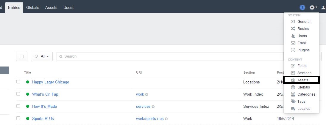 Go to "Assets" by clicking on the arrow next to the gear in the top right corner of the control panel.