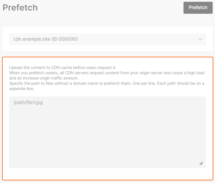 • If you need to update files stored in the CDN, first purge these files and then prefetch.