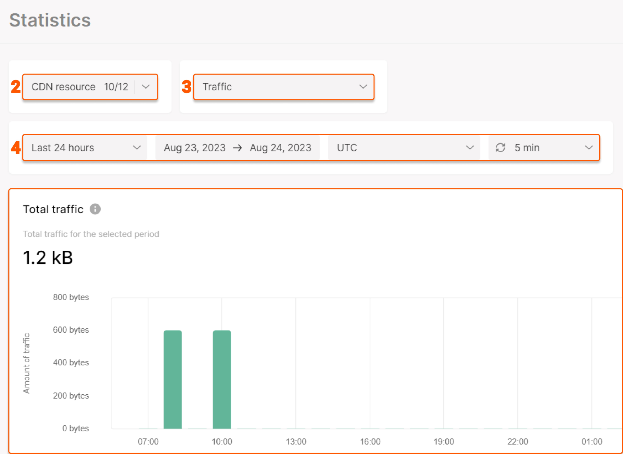 2. Select the relevant resource(s) from the "CDN resource" dropdown menu to display their statistics.
