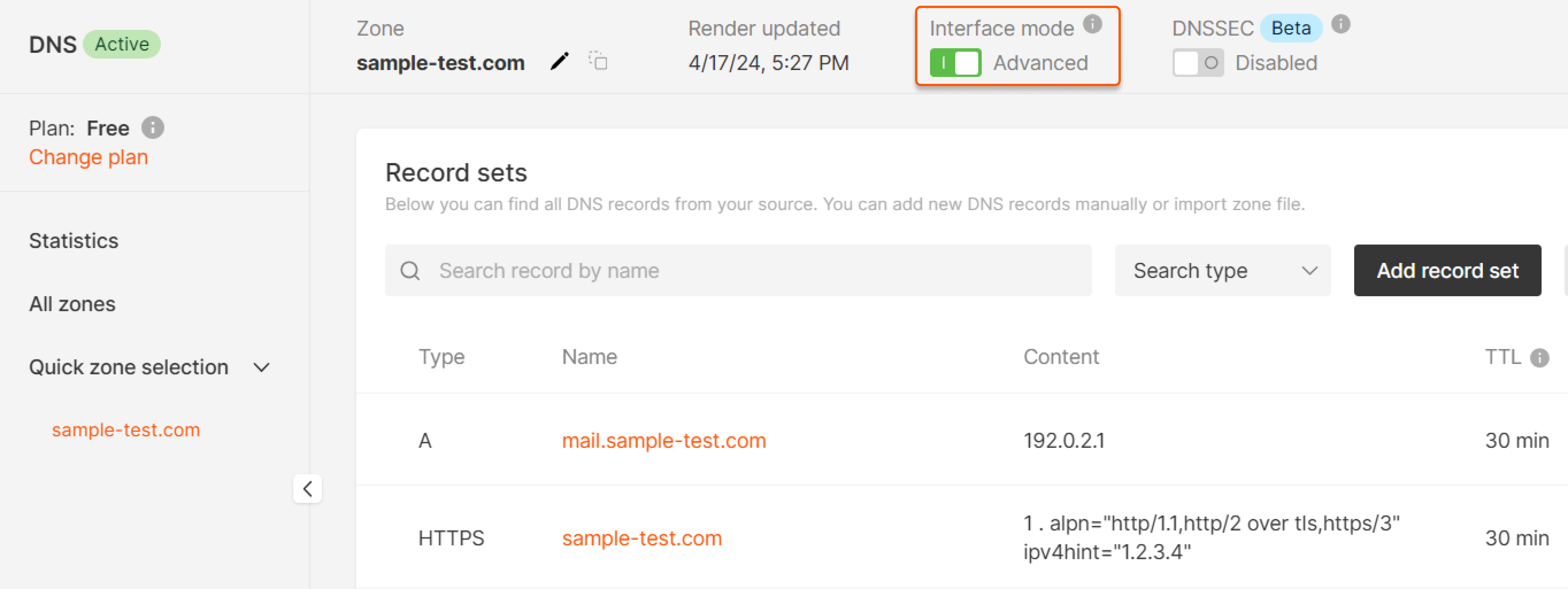 Manage DNS records (advanced interface mode with dynamic response)