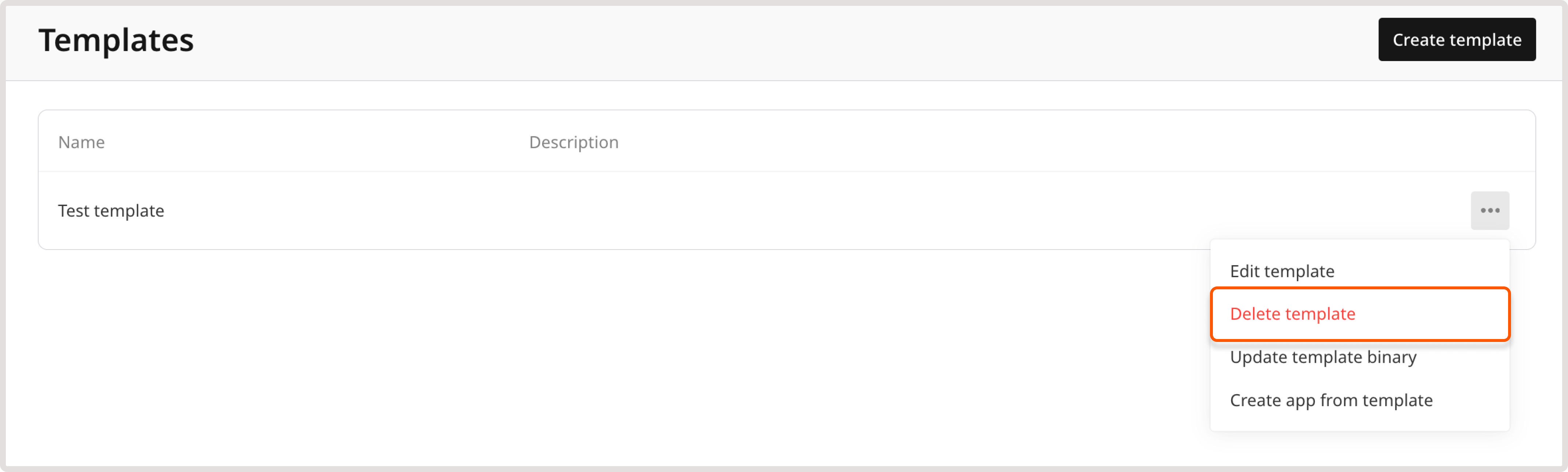 2. On the Templates page, click the three-dot icon next to the template that you want to remove.