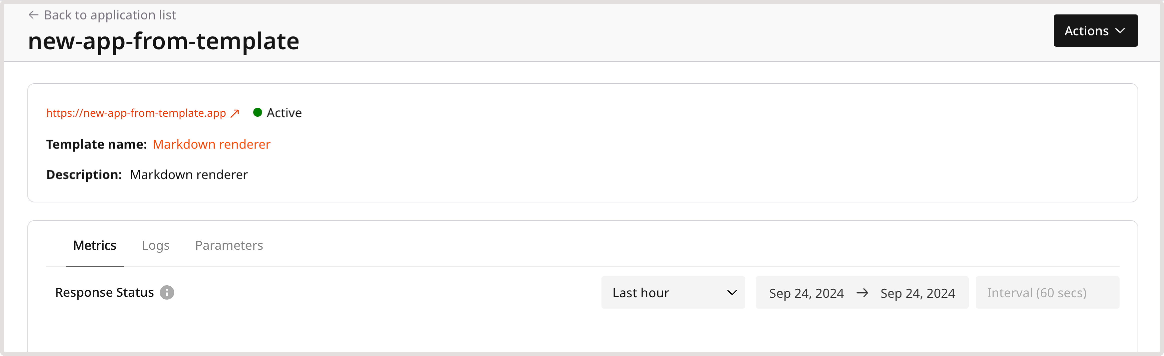 5. Provide environment variables or any required configuration for your app. Note that the list of setup options depends on the selected template. For example, if you create a CDB EdgeCompute app from a Markdown template, you need to add response headers, enter the base part of the origin URL, and add content from the <head> section of an HTML document.