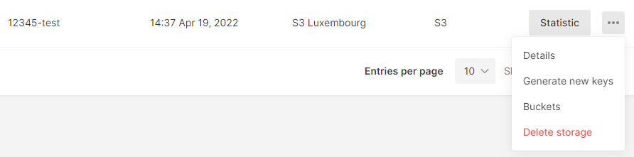 After creation or settings update (adding keys or changing password), it might take time for the requests to get processed. Orange color indicates a processing state, while green one shows that the storage is ready.