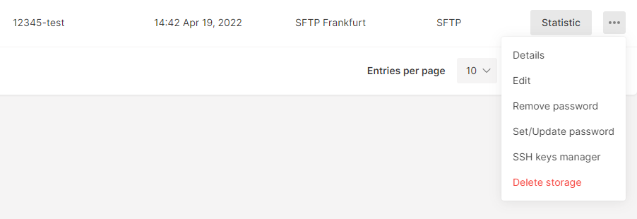 Password can be set, removed, and updated. To add new keys (up to 5 per storage) or limit access to the uploaded ones go to the SSH keys manager.