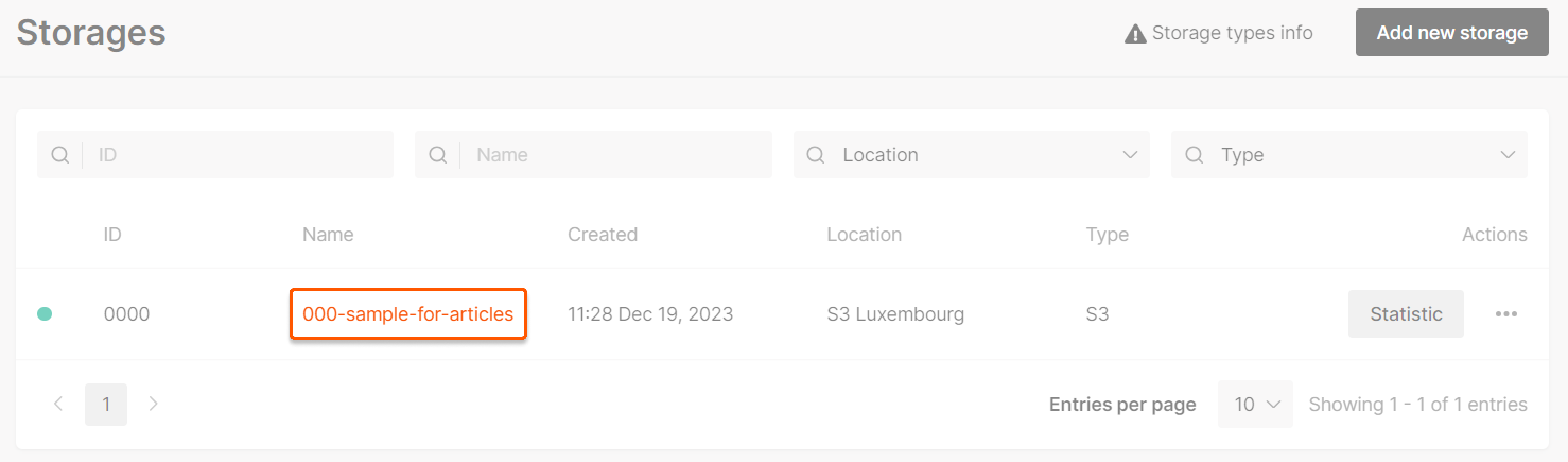 1. Navigate to the Object Storage section. Click the relevant storage name.