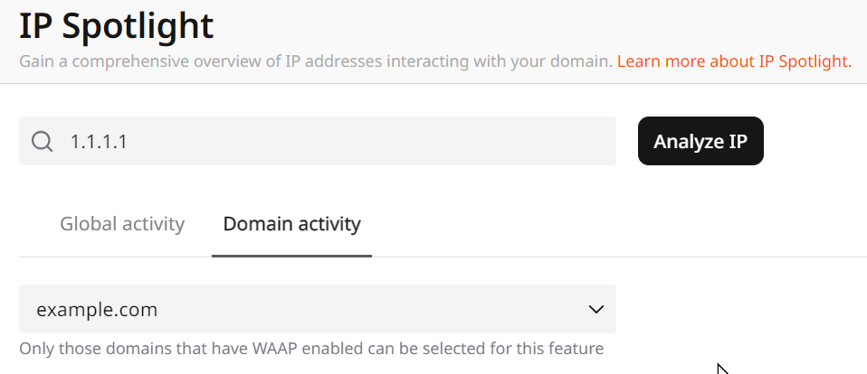 The IP Spotlight feature is available on the Enterprise plan. To enable it for your domain, contact our support team.